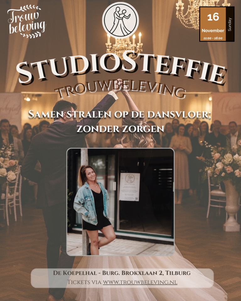 Zaterdag 16 november is dé dag om inspiratie op te doen voor jullie grote moment. StudioSteffie staat klaar op de Trouwbeleving trouwbeurs om jullie te helpen met een openingsdans die raakt, verrast en helemaal bij jullie past.